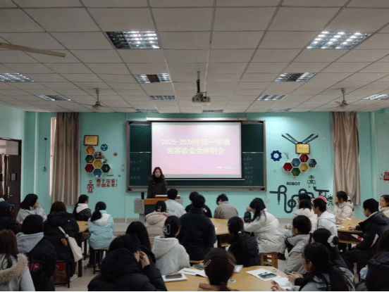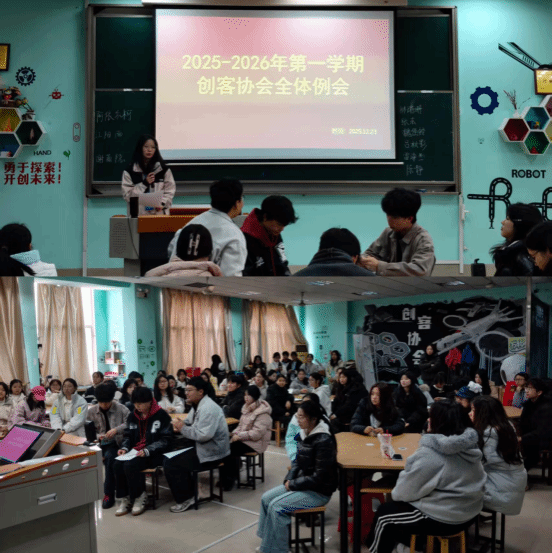 2025年12月23日,创新创业学院创客协会在红角洲校区2105创新创业实验室召开本学期最后一次全体例会。会议由会长李淑贞主持,指导老师李莹出席。